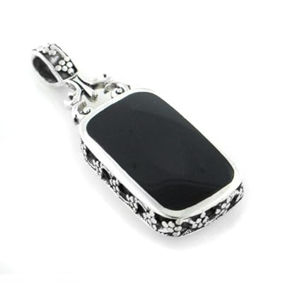 This is a beautiful Sterling Silver Reversible Victorian Style Pendant with Genuine Black Onyx and Mother of Pearl. The Pendant measures 1&3/4" long x 3/4" wide, bale opening measures 4mm wide, and item is crafted of genuine .925 sterling silver. Detail